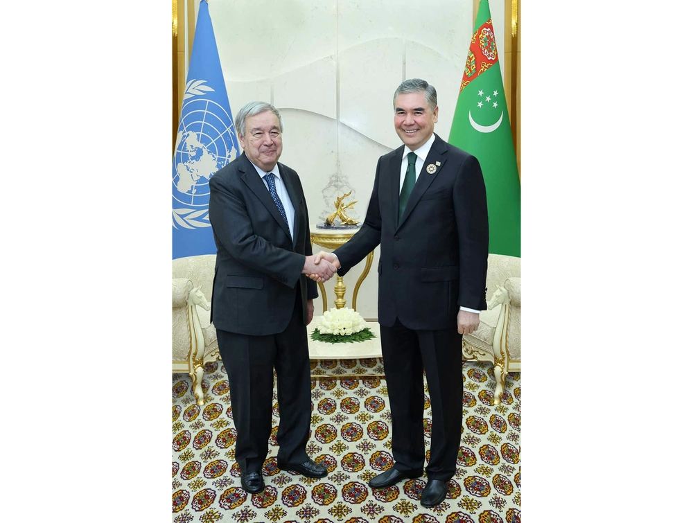 Birleşen Milletler Guramasynyň Baş sekretary Antoniu Guterriş Hazaryň kenarynda geçirilýän BMG-niň Deňze çykalgasy bolmadyk ösüp barýan döwletler boýunça üçünji maslahatyna gatnaşmak maksady bilen ýurdumyza geldi. Belent mertebeli myhman Türkmenbaşy Halkara howa menzilinde mähirli garşylanyldy. Asylly däbe görä, oňa gül desseleri gowşurylyp, duz-çörek hödür edildi. Türkmen halkynyň Milli Lideri, Türkmenistanyň Halk Maslahatynyň Başlygy Gurbanguly Berdimuhamedow BMG-niň Baş sekretary bilen mähirli salamlaşyp, ony mukaddes türkmen topragynda görýändigine şatdygyny aýtdy.