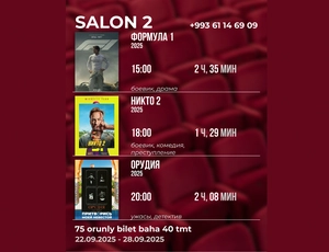 Bu filmler hepdäniň ahyryna çenli her gün aşakda bellenen wagtda görkeziler: