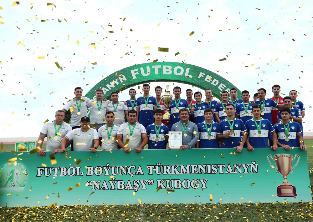Ýeňijilere baýraklary Türkmenistanyň Futbol federasiýasynyň ýolbaşçylar düzümi bilen Türkmenistanyň Bedenterbiýe we sport baradaky döwlet komitetiniň wekilleri bilelikde gowşurdylar.