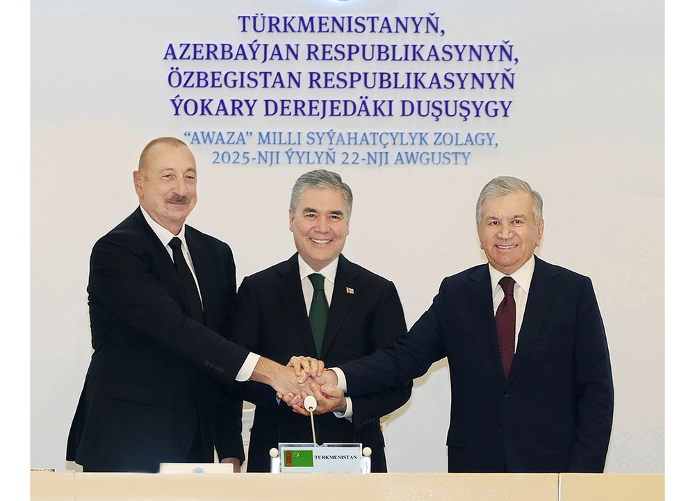 22-nji awgustda «Awaza» milli syýahatçylyk zolagyndaky Kongresler merkezinde türkmen halkynyň Milli Lideri, Türkmenistanyň Halk Maslahatynyň Başlygy Gurbanguly Berdimuhamedowyň, Azerbaýjan Respublikasynyň Prezidenti Ilham Aliýewiň we Özbegistan Respublikasynyň Prezidenti Şawkat Mirziýoýewiň arasynda üçtaraplaýyn duşuşyk geçirildi.