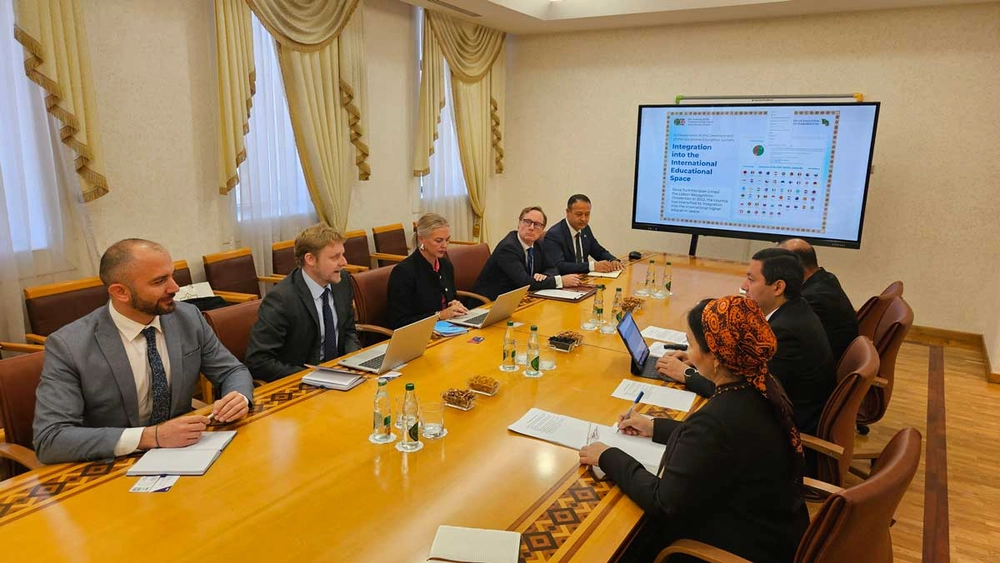 18-nji sentýabrda Türkmenistanyň Bilim ministrliginde Beýik Britaniýanyň «AQA Global Assessment Services» guramasynyň wekiliýeti bilen resmi duşuşyk geçirildi. Wekiliýetiň düzüminde halkara işewür, guramanyň ösüş boýunça direktory jenap Şon Krouli, baha beriş ulgamlary boýunça direktory hanym Anna Grin we sebit geňeşçisi jenap Wali Guseýin bar.