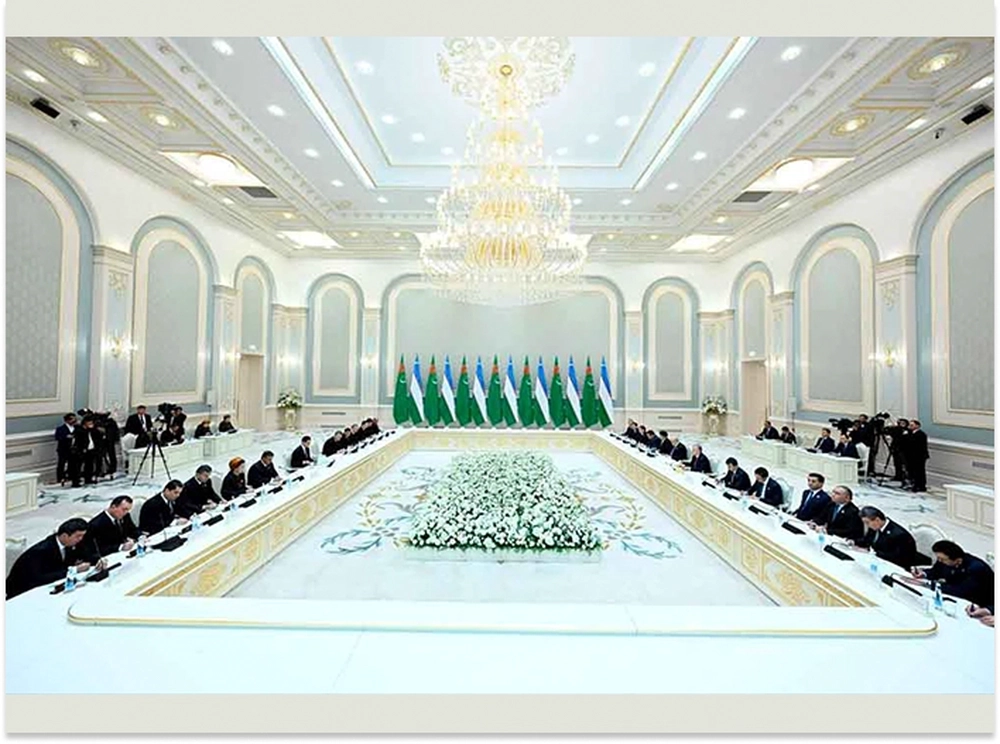 Köşgüň ikiçäk duşuşyklar otagynda iki halka mahsus açyklyk, birek-birege düşünişmek hem-de özara ynanyşmak ýagdaýynda geçirilen gepleşikleriň dowamynda däp bolan türkmen-özbek gatnaşyklaryny mundan beýläk-de hemmetaraplaýyn ösdürmek bilen bagly meseleleriň giň toplumy ara alnyp maslahatlaşyldy. Soňra gepleşikler iki ýurduň resmi wekiliýetleriniň gatnaşmagynda giňeldilen düzümde dowam etdi.