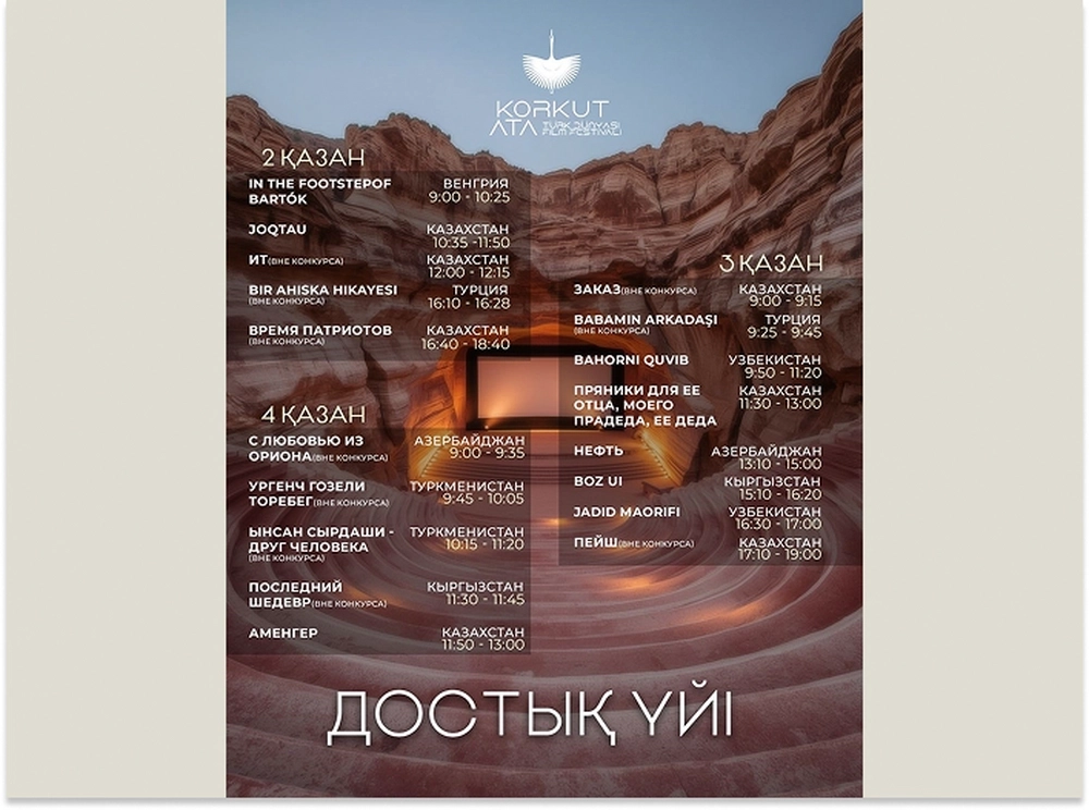 1-nji oktýabrda Gazagystanyň Mangistau welaýatynda «Gorkut ata» halkara kinofestiwalynyň açylyş dabarasy geçirildi. Azerbaýjandan, Türkiýeden, Türkmenistandan, Gyrgyzystandan, Özbegistandan, Wengriýadan hem-de Gazagystandan gelen kino sungatynyň wekilleri we medeniýet işgärleri gyzyl halydan geçdiler.