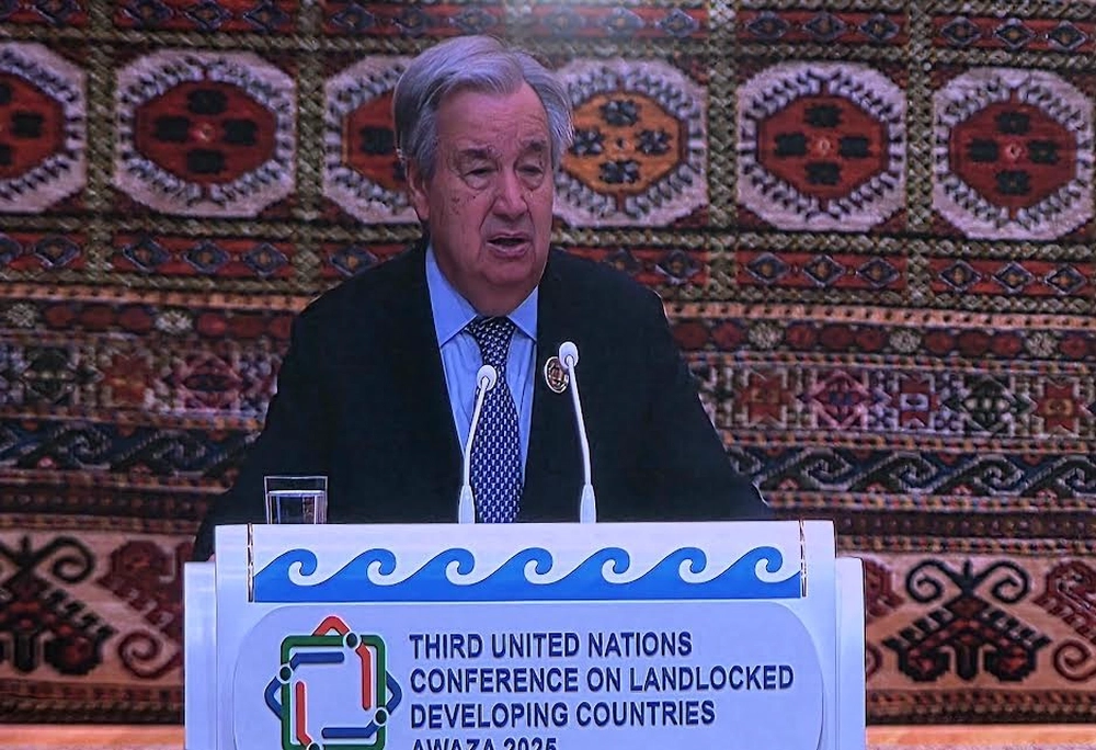 BMG-niň Baş sekretary Antoniu Guterriş Awazadaky Kongressler merkezinde geçýän Birleşen Milletler Guramasynyň Deňze çykalgasy bolmadyk ösüp barýan döwletler boýunça üçünji maslahatynyň dabaraly açylyşynda çykyş etdi.