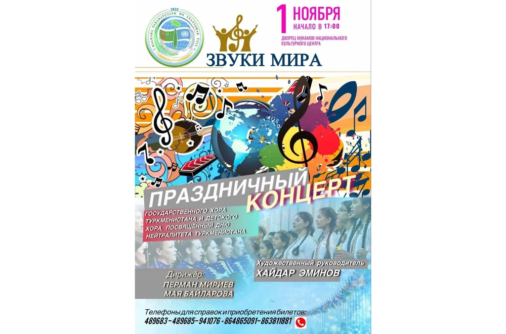 Konsert 1-nji noýabrda Türkmenistanyň Medeniýet merkeziniň Mukamlar köşgünde geçiriler. Ol sagat 17:00-da başlanar.