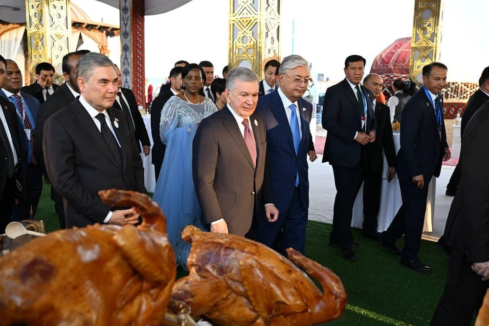 Soňra türkmen halkyna mahsus myhmansöýerlik däplerine eýerilip, Gahryman Arkadagymyz we wekiliýet ýolbaşçylary Türkmenistanyň sergi meýdançasynda dikilen ýörite ak öýe, saçak başyna çagyryldy. Bu ýerde ýokary derejeli myhmanlara türkmen milli tagamlary hödür edildi.