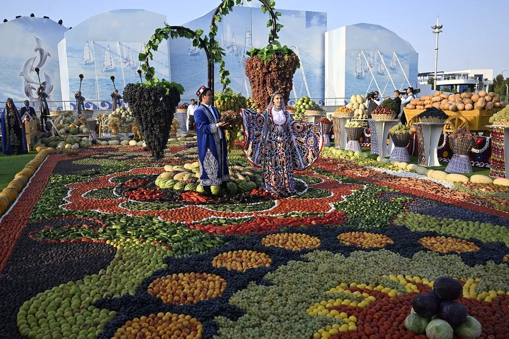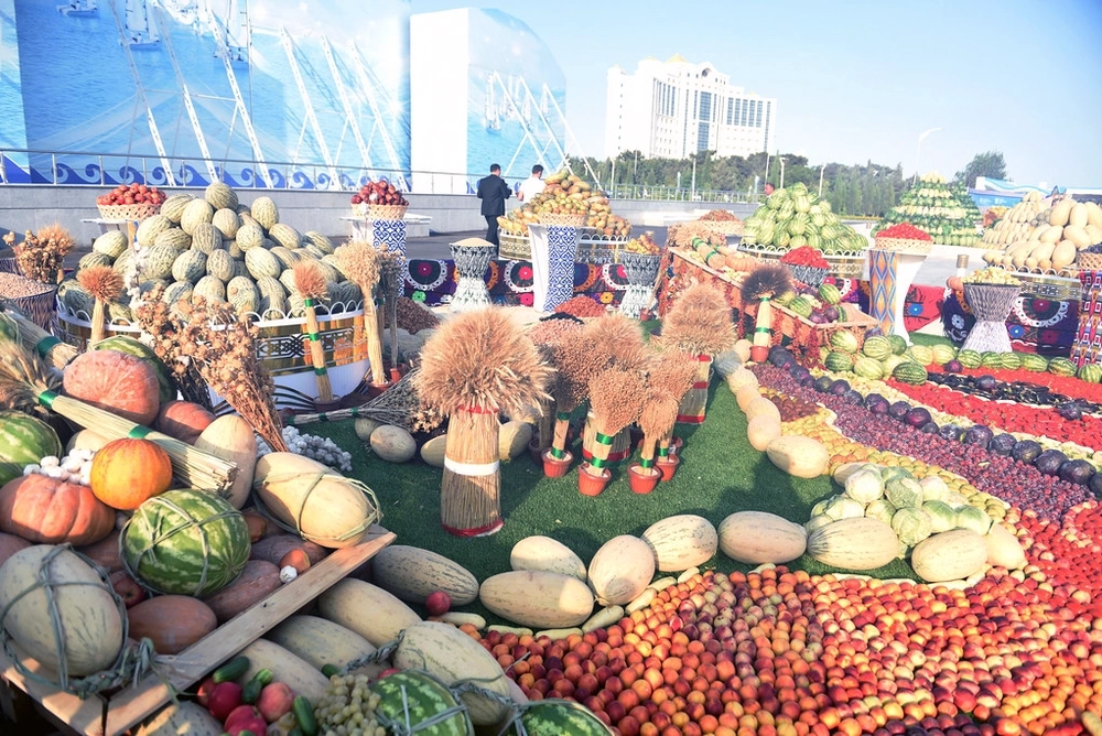 Gahryman Arkadagymyz hem-de wekiliýet ýolbaşçylary soňra Türkmenistanyň sergi meýdançasyna geldiler. Bu ýerde myhmanlar ýurdumyzyň medeniýet we sungat ussatlarynyň ýerine ýetiren çykyşlaryna tomaşa etdiler hem-de Milli Liderimiziň tagallalary bilen çap edilen «Bereketli türkmen saçagy» atly kitabyň esasynda milli tagamlaryň taýýarlanylyşyny, gök-bakja hem-de miwe önümleriniň, şeýle hem amaly-haşam sungatynyň eserleriniň sergisini synladylar.