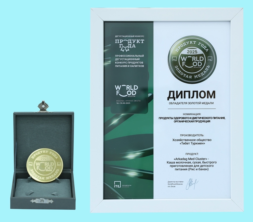 Bu ýerde Gahryman Arkadagymyza şäheriň «Arkadag Medisina Klasteri Menejment» kärhanasynyň önümleriniň we çaga iýmitleriniň şu ýylyň sentýabrynda Moskwada geçirilen gözden geçirilişde «Ýylyň önümi» atly altyn medala we degişli diploma mynasyp bolandygy baradaky hoş habar aýdyldy. Munuň özi, ýurdumyzyň dürli künjeklerinde bolşy ýaly, Arkadag şäherinde-de durmuş maksatly, aýratyn-da, sagdyn iýmitlenmek wezipelerini üstünlikli amala aşyrýan önümçilik toplumlarynyň ekologik taýdan arassa önümleriniň halkara derejede ykrar edilýändiginiň aýdyň beýanydyr.