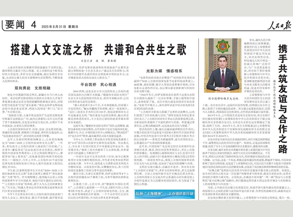 Hytaýyň «Ženmin Žibao» gazetinde neşir edilen makalasynda Türkmenistanyň Prezidenti tükmen-hytaý gatnaşyklarynyň taryhyny beýan edýär we onuň diýseň möhüm ähmiýete eýedigini hem-de strategiki häsiýetini tassyklaýar.