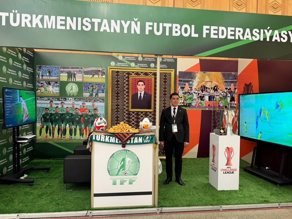 Aşgabatda geçýän «Kids EXPO: ähli zat çagalar üçin» atly halkara sergi-ýarmarkasyna Türkmenistanyň futbol federasiýasy hem öz pawilýony bilen çykdy. Türkmenistanyň Söwda-senagat edarasynyň Sergi merkezinde ýerleşdirilen Türkmenistanyň Futbol federasiýasynyň diwarlygy sergä gatnaşyjylaryň üns merkezinden ornuny tapdy. Aýratyn hem, «Arkadag» futbol klubunyň Aziýanyň Futbol konfederasiýasynyň Çagyryş ligasynyň ýeňijisi hökmünde eýe bolan kubogynyň we medallarynyň sergilenmegi ähli myhmanlarda ýakymly täsirleri döretdi. Şonuň bilen birlikde, bu abraýly kubok bilen ýadygärlik surata düşmek ene-atalar we çagalar üçin gaýtalanmajak sowgat boldy.