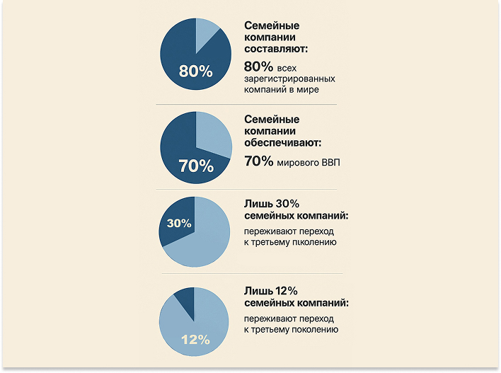 Учитывая их молодой возраст, практически все туркменские компании организованы как семейные предприятия, где повседневное управление постепенно переходит от основателей (родителей) к детям и, всё чаще, внукам. Этот процесс смены поколений происходит на фоне быстрого роста и сопровождается рядом известных управленческих и организационных вызовов: как обеспечить упорядоченную передачу дел, перераспределить и оптимизировать управленческие обязанности, выработать новое видение, сохранив при этом динамику и сплочённость.