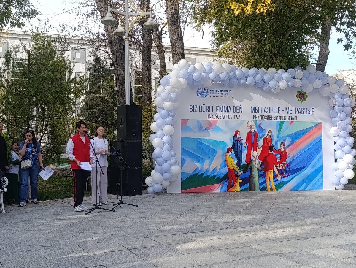 15 ноября в столичном парке «Ашхабад» состоялся инклюзивный фестиваль «Мы разные – мы равные». Мероприятие, которое проводится регулярно в течение последних четырёх лет, было организовано Страновой командой ООН в Туркменистане в сотрудничестве с местными общественными организациями при поддержке Правительства Туркменистана.
