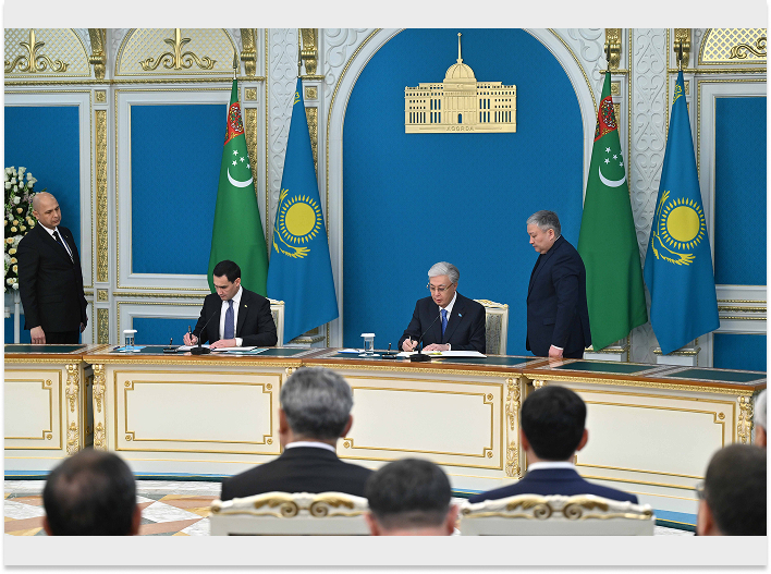 По итогам переговоров Президенты Сердар Бердымухамедов и Касым-Жомарт Токаев подписали Совместное заявление.
