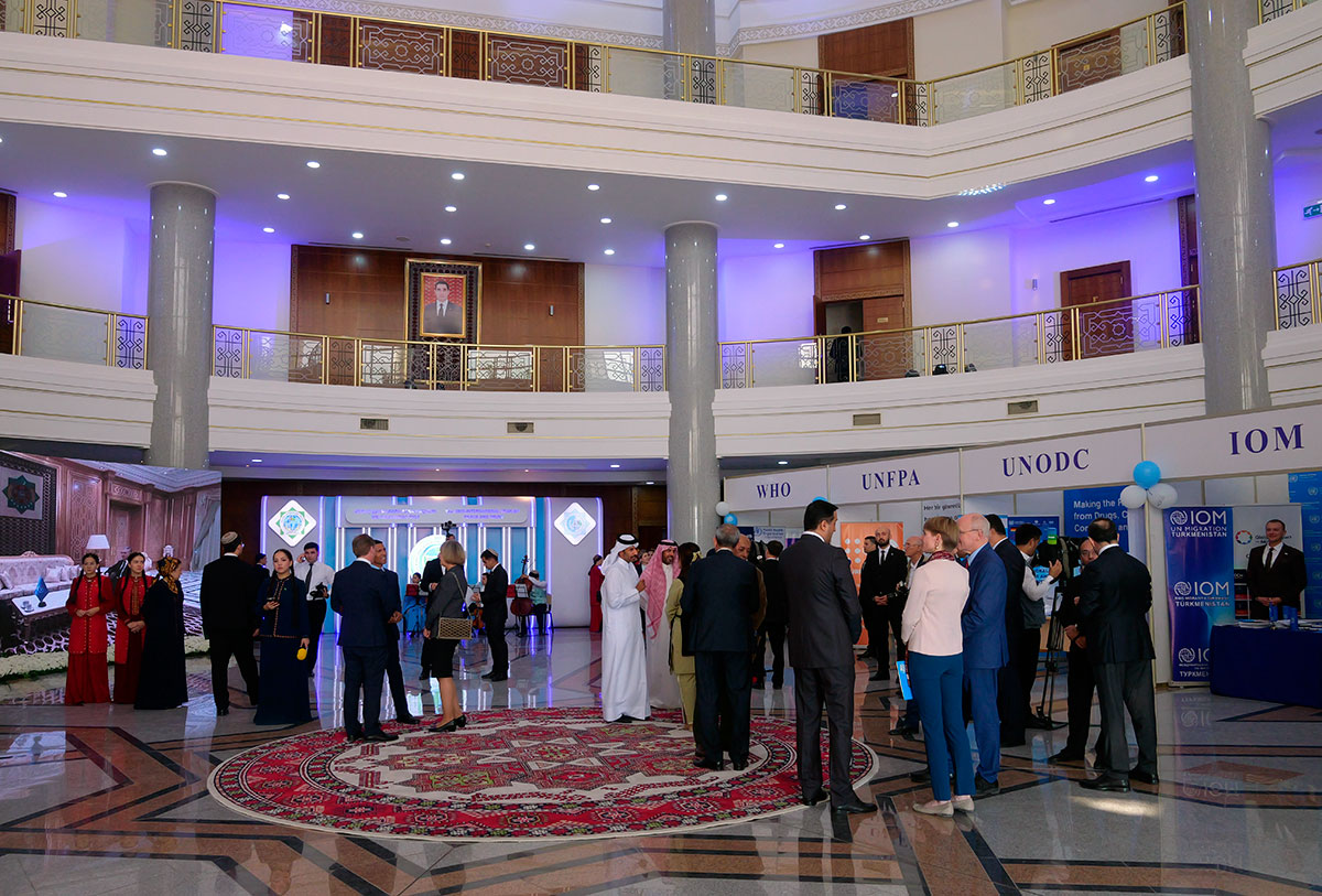 В фойе вуза участники форума ознакомились с экспонатами выставки, посвящённой национальным ценностям нашего народа и направлениям сотрудничества Туркменистана с ООН.