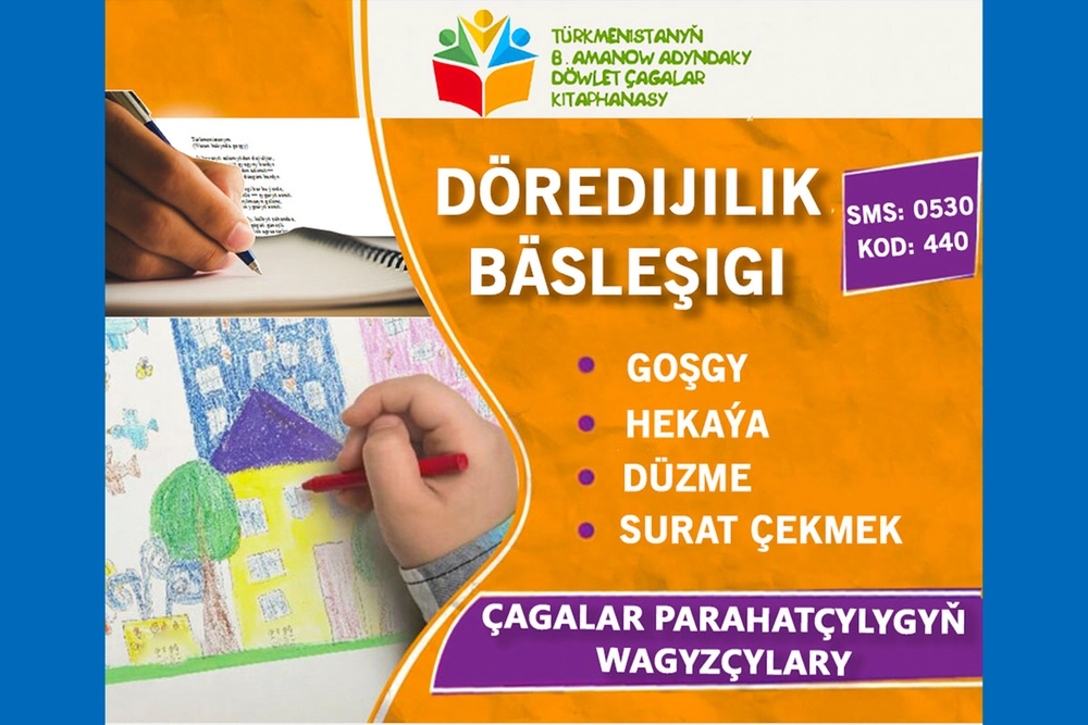 Государственная детская библиотека Туркменистана имени Базара Аманова совместно с отделом «Махабат» Государственного комитета Туркменистана по телевидению, радиовещанию и кинематографии проводит творческий конкурс среди школьников под названием «Дети – проповедники мира» в честь 30-летия постоянного нейтралитета Туркменистана.