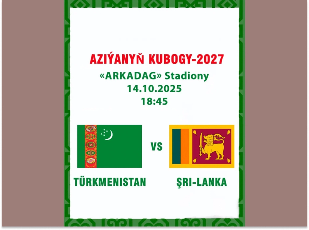 14 октября состоится матч четвертого тура отборочного турнира Кубка Азии-2027 группы “D” между сборными Туркменистана и Шри-Ланки. Матч пройдет на 10-тысячном стадионе в городе Аркадаг. Начало матча в 18:45 по ашхабадскому времени.
