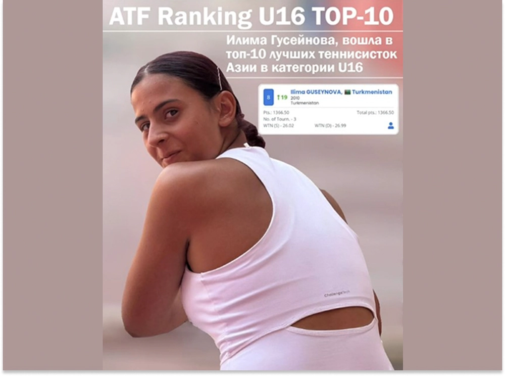 На этот раз Илима Гусейнова вошла в топ-10 лучших теннисисток Азии в категории U16, заняв восьмую строчку.