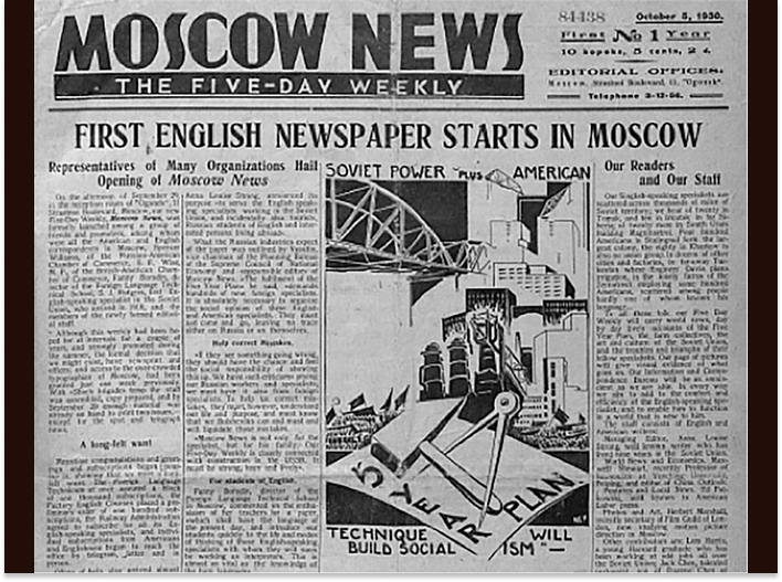 1930 — в свет вышел первый выпуск англоязычной газеты «Moscow News»