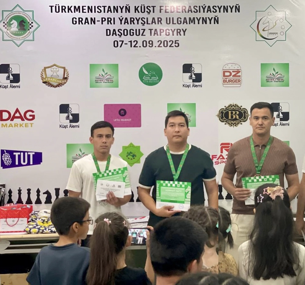 • Золотую медаль завоевал Мерген Какабаев — генеральный секретарь Федерации шахмат Туркменистана, набравший 8 очков из 9. Его опыт и стратегическая глубина вновь доказали, что он по праву остаётся одним из лидеров туркменских шахмат.
