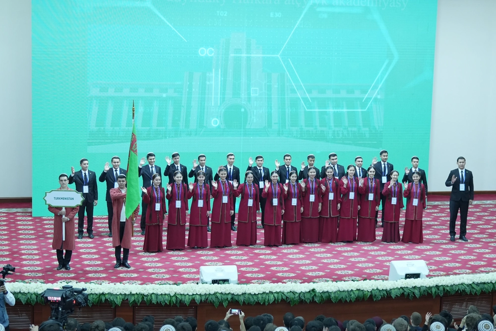 Торжественное открытие олимпиады украсило исполнение песен и танцев русского, китайского, иранского, узбекского, казахского, азербайджанского, белорусского, армянского, румынского и таджикского народов представителями культурного центра университета «Bagtyýarlyk owazlary».