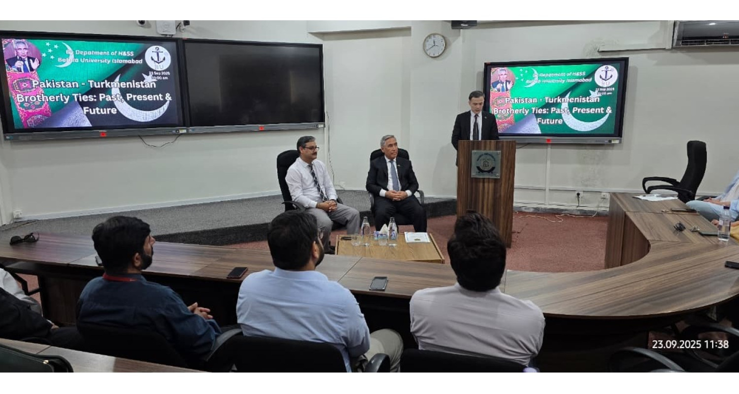 23 сентября Посол Туркменистана в Пакистане А.Мовламов и 1-й секретарь Посольства Б.Язов посетили исламабадский кампус Университета Бахрия, где провели встречу с генеральным директором кампуса Наимом Сарваром и деканом факультета гуманитарных и социальных наук профессором Адамом Саудом.