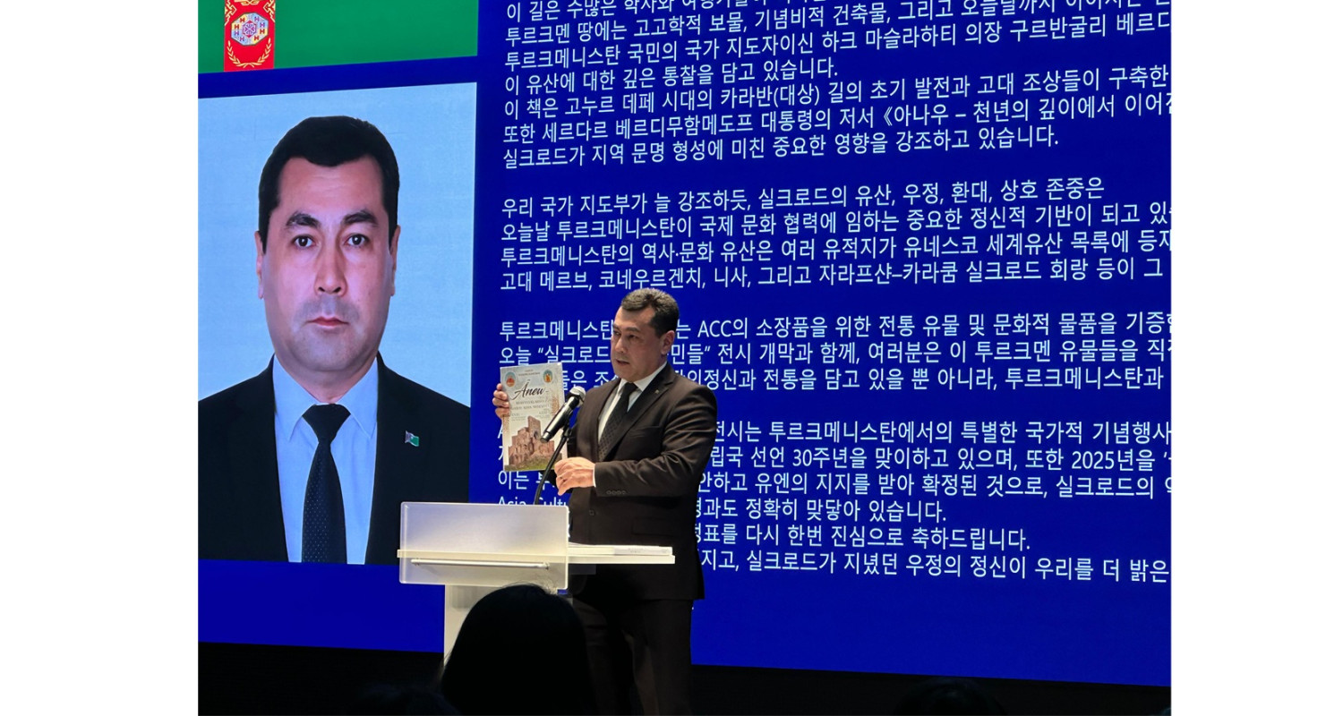25 ноября Чрезвычайный и Полномочный Посол Туркменистана в Республике Корея Б.Дурдыев принял участие в церемонии открытия выставки «Кочевые народы вдоль Шелкового пути», организованной по случаю 10-летия Национального центра азиатской культуры Республики Корея в городе Кванджу.