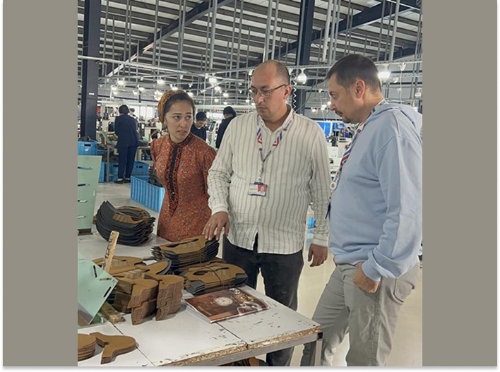Дмитрий Шлапаченко и представители предприятий «Täze Ay» (пищевой промышленности) и «Gerçek» (производитель обуви частного сектора) обсудили пути продвижения устойчивых деловых практик, стимулирования инноваций и поддержки местного экономического роста.
