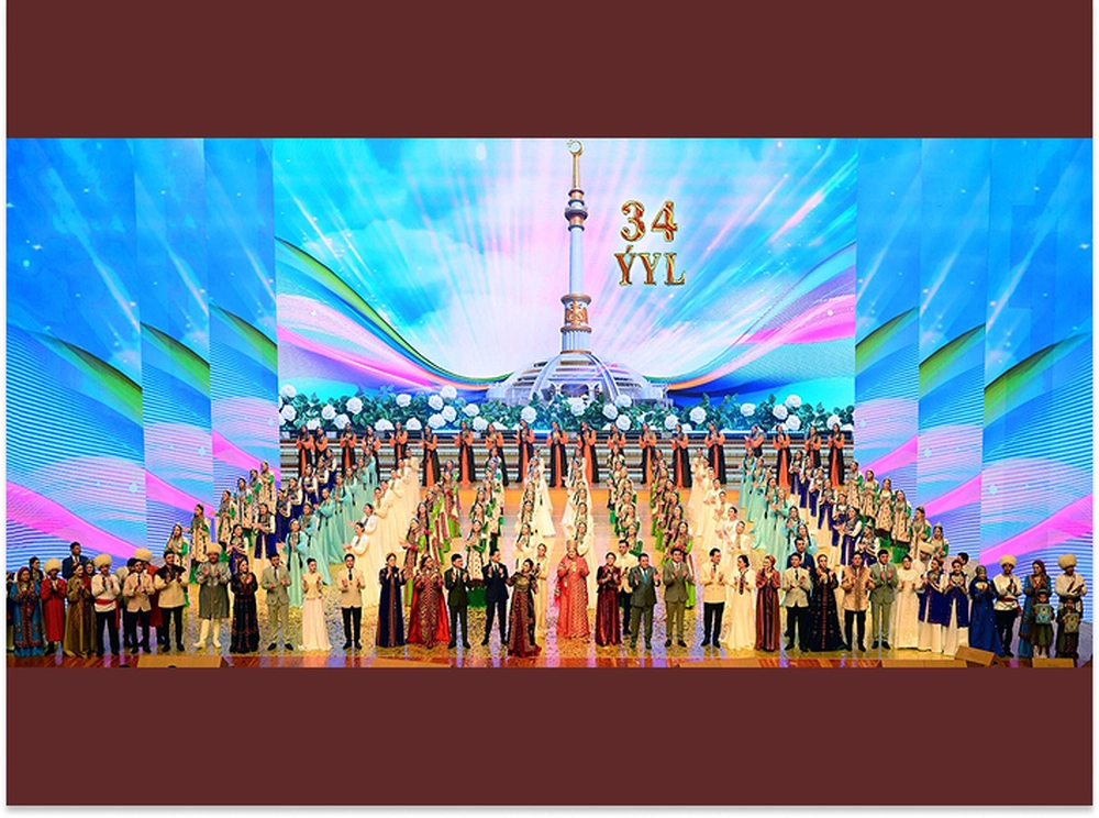 В столичном Центре конгрессов «Mejlisler merkezi» при участии Президента Сердара Бердымухамедова состоялся концерт деятелей культуры и мастеров искусств по случаю 34-й годовщины независимости Туркменистана.
