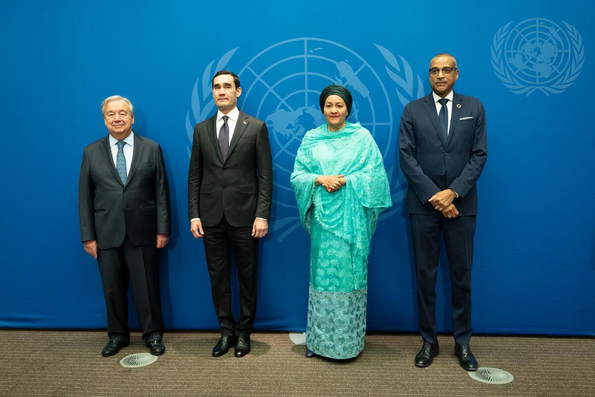 Здесь главу государства тепло встретили Генеральный секретарь ООН Антониу Гутерриш и другие официальные лица. Затем состоялась церемония совместного фотографирования.