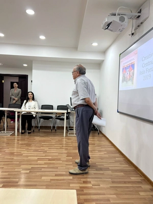 В ходе заседания члены Отделения представили презентацию, рассказав о первом участии в форуме по креативной экономике в 2019 году в Ташкенте, а также о ключевых мероприятиях, организованных в последующие годы, включая форум по Креативной и Инновационной Экономике в Ашхабаде, проведенный в марте текущего года при поддержке ООН, ЮНЕСКО и Посольства Великобритании. Были обозначены цели и задачи нового Отделения, его направления деятельности и состав Консультативного совета.