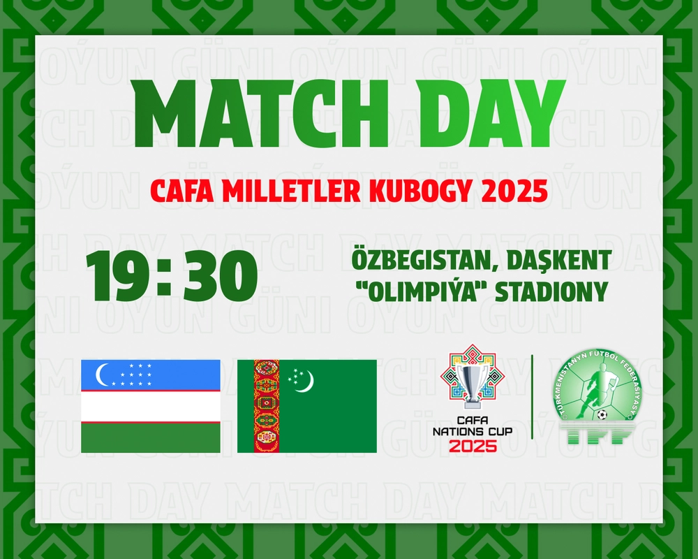 Сегодня национальная сборная Туркменистана проведёт свой второй матч в рамках группы «А» Кубка наций CAFA 2025, где ей предстоит встретиться с командой-хозяйкой турнира — сборной Узбекистана. Встреча состоится на стадионе «Олимпия» в Ташкенте и начнётся в 19:30 по ашхабадскому времени.