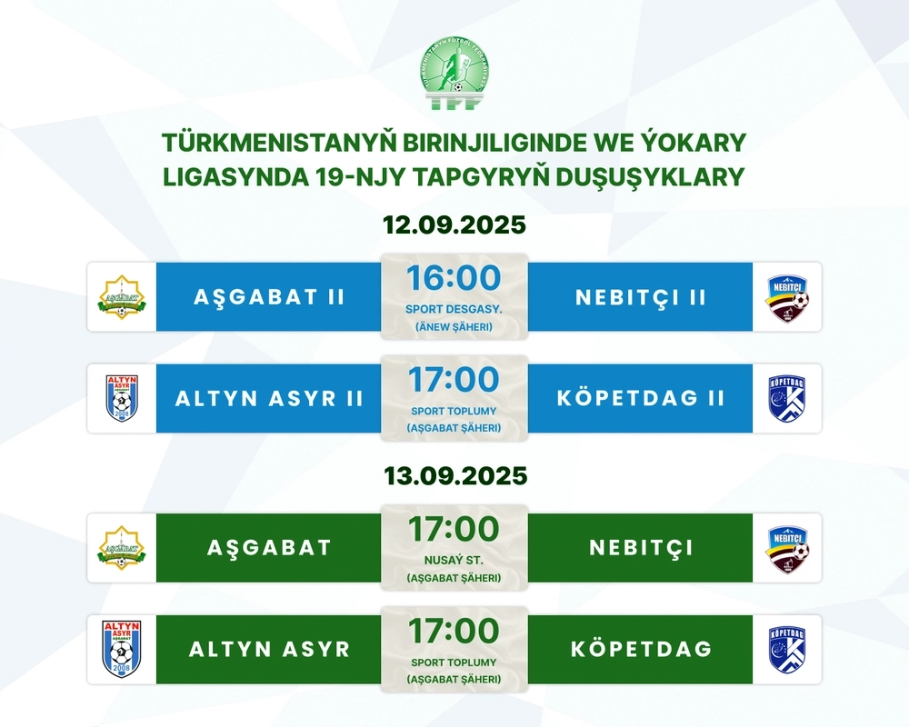 Расписание матчей 19-го тура чемпионата и высшей лиги Туркменистана