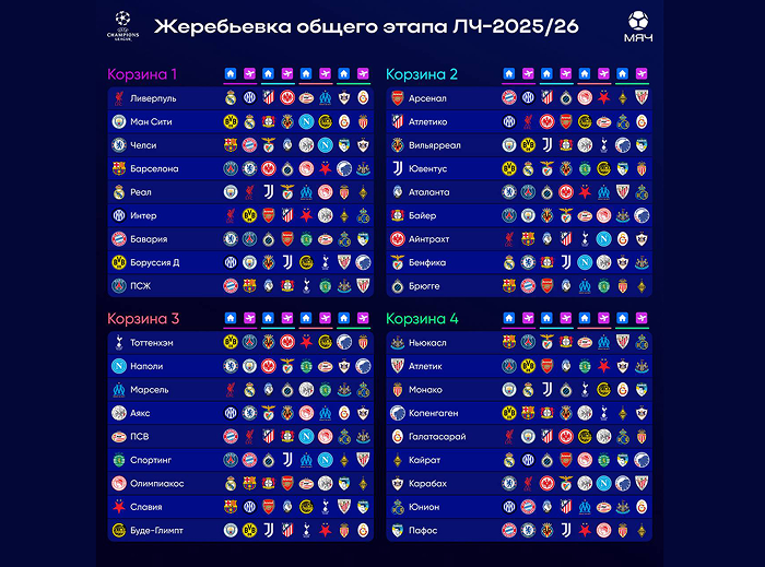 Итак: соперниками действующего чемпиона турнира «Пари Сен-Жермен» (ПСЖ) в основной стадии Лиги чемпионов сезона-2025/26 станут немецкая «Бавария» и испанская «Барселона». Помимо двух грандов ПСЖ встретится с «Аталантой», «Байером», «Тоттенхэмом», «Спортингом», «Ньюкаслом» и «Атлетиком».