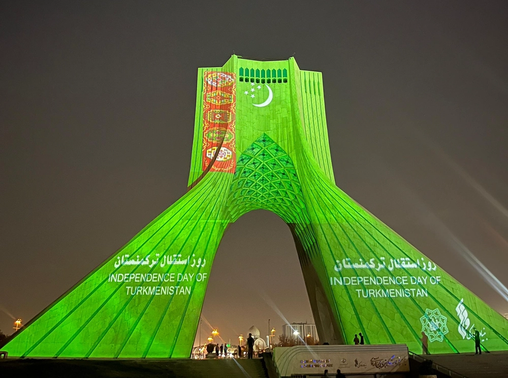 На площади Азади состоялась торжественная церемония показа Флага Туркменистана. Мероприятие было организовано Посольством Туркменистана в Иране и приурочено к 34-й годовщине Независимости Туркменистана.