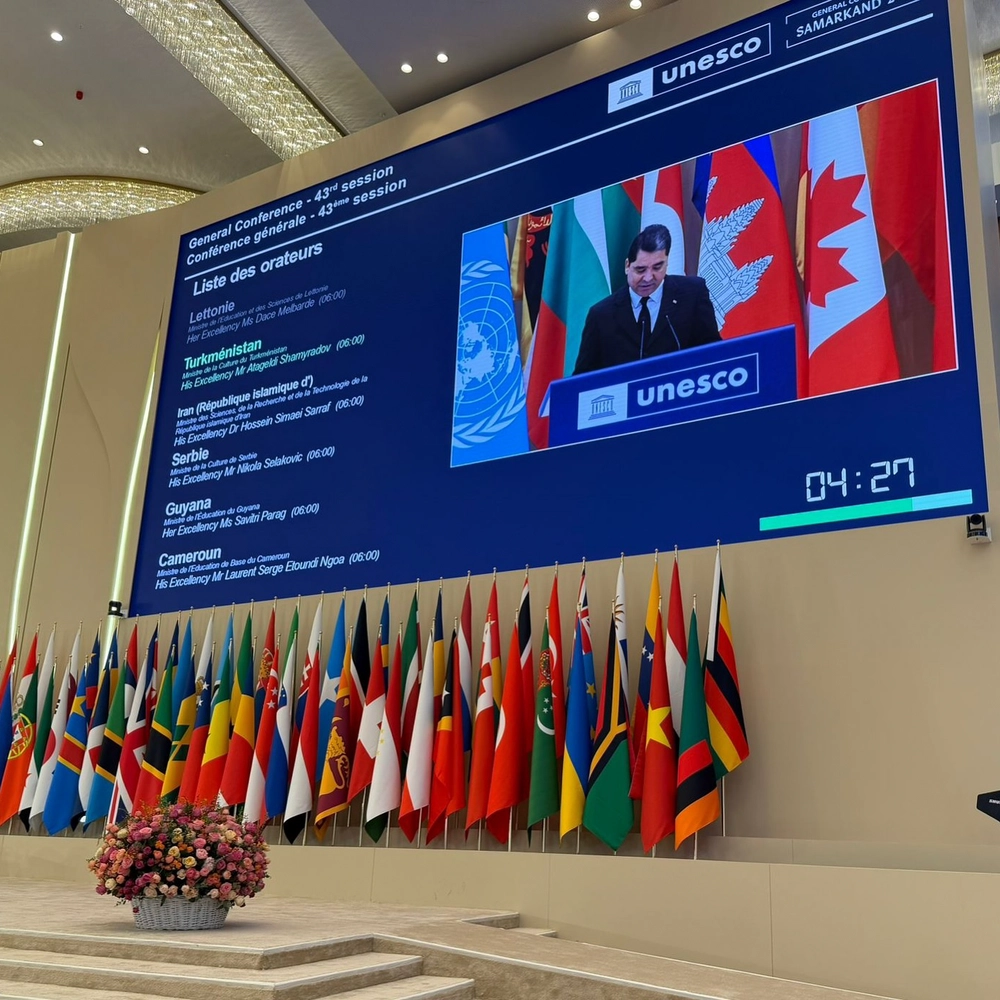 31 октября министр культуры Туркменистана А.Шамырадов выступил на пленарном заседании 43-й сессии Генеральной конференции ЮНЕСКО, проходящей в городе Самарканд.